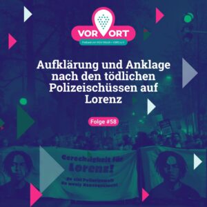 Wir sprechen mit Samuel von der Initiative „Gerechtigkeit für Lorenz“ und Nebenklagevertreterin Lea Voigt im Podcast über den Stand des Strafverfahrens gegen den Polizeibeamten und die Forderungen nach dem Ende von Straflosigkeit bei tödlicher Polizeigewalt.